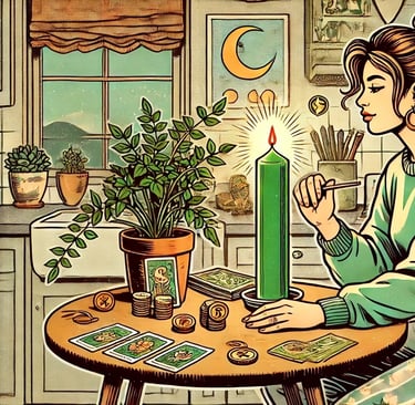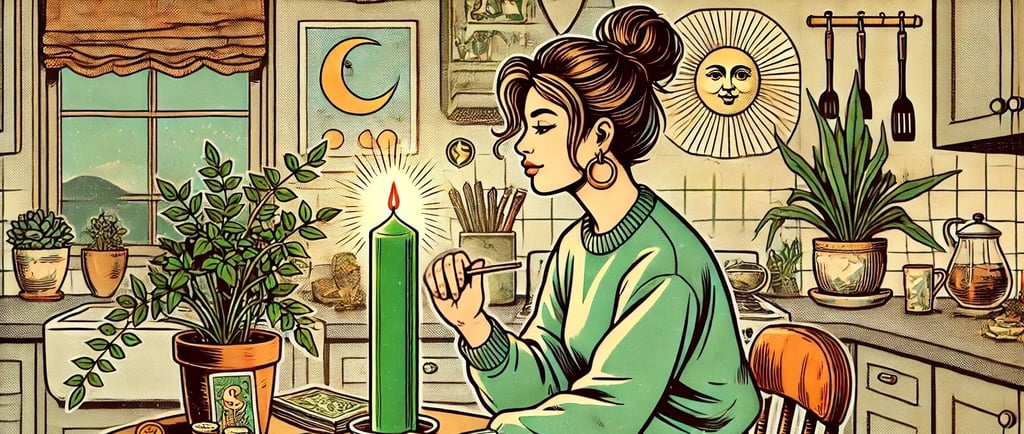 Write down what “wealth” means to you. Not the internet version—your version. Is it food security? A home that feels sacred? A little money left over after bills? Be specific.Green Candle, Gentle Fire